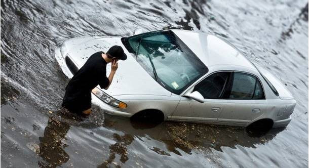 - Tuyệt đối không khởi động lại xe: Một số kỹ sư có kinh nghiệm cho rằng, nếu chiếc xe đã ngập qua nắp ca-po thì gần như chắc chắn nước đã vào đến buồng đốt. Nếu mực nước ở mức cao, nước sẽ lọt vào động cơ, hộp số hoặc hệ thống nhiên liệu, việc khởi động xe lúc này sẽ chỉ khiến việc hư hỏng trầm trọng thêm và nguy cơ bị thuỷ kích là rất cao. Thay vào đó, hãy đẩy xe vào rìa đường, lên chỗ cao ráo hoặc gọi cứu hộ.