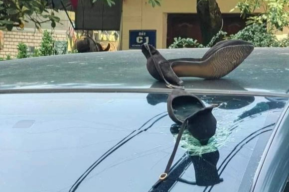 Sáng nay 29/8, trên mạng xã hội lan truyền hình ảnh một chiếc xe ô tô đỗ dưới sân khu chung cư bị giày cao gót găm vào kính lái. Theo hình ảnh, có thể phán đoán sự việc xảy ra do ai đó vứt đôi giày cao gót từ trên tầng cao xuống, rơi trúng kính lái của xe ô tô đỗ bên dưới.