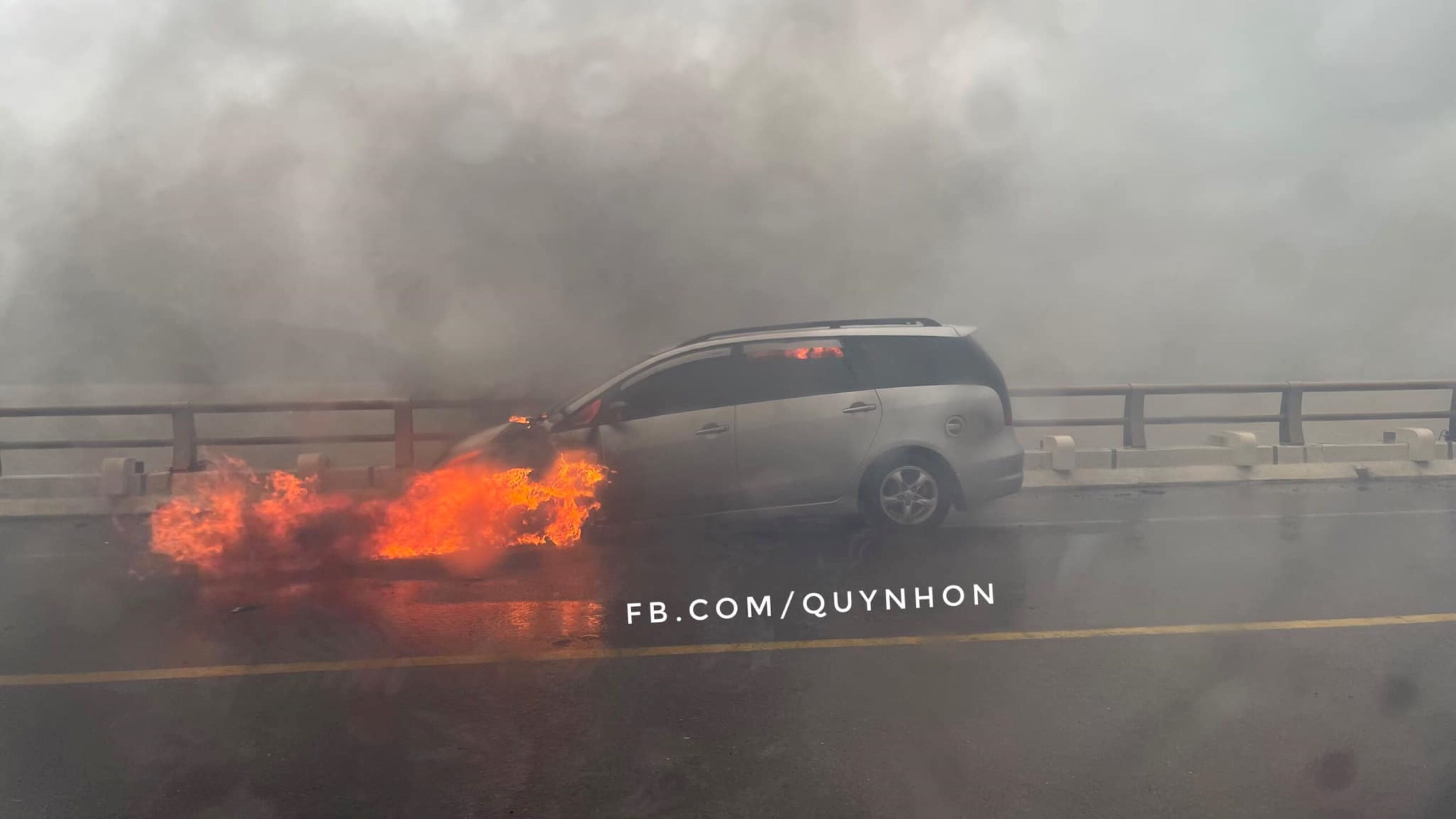 | Ô tô bốc cháy dữ dội giữa cầu Thị Nại |