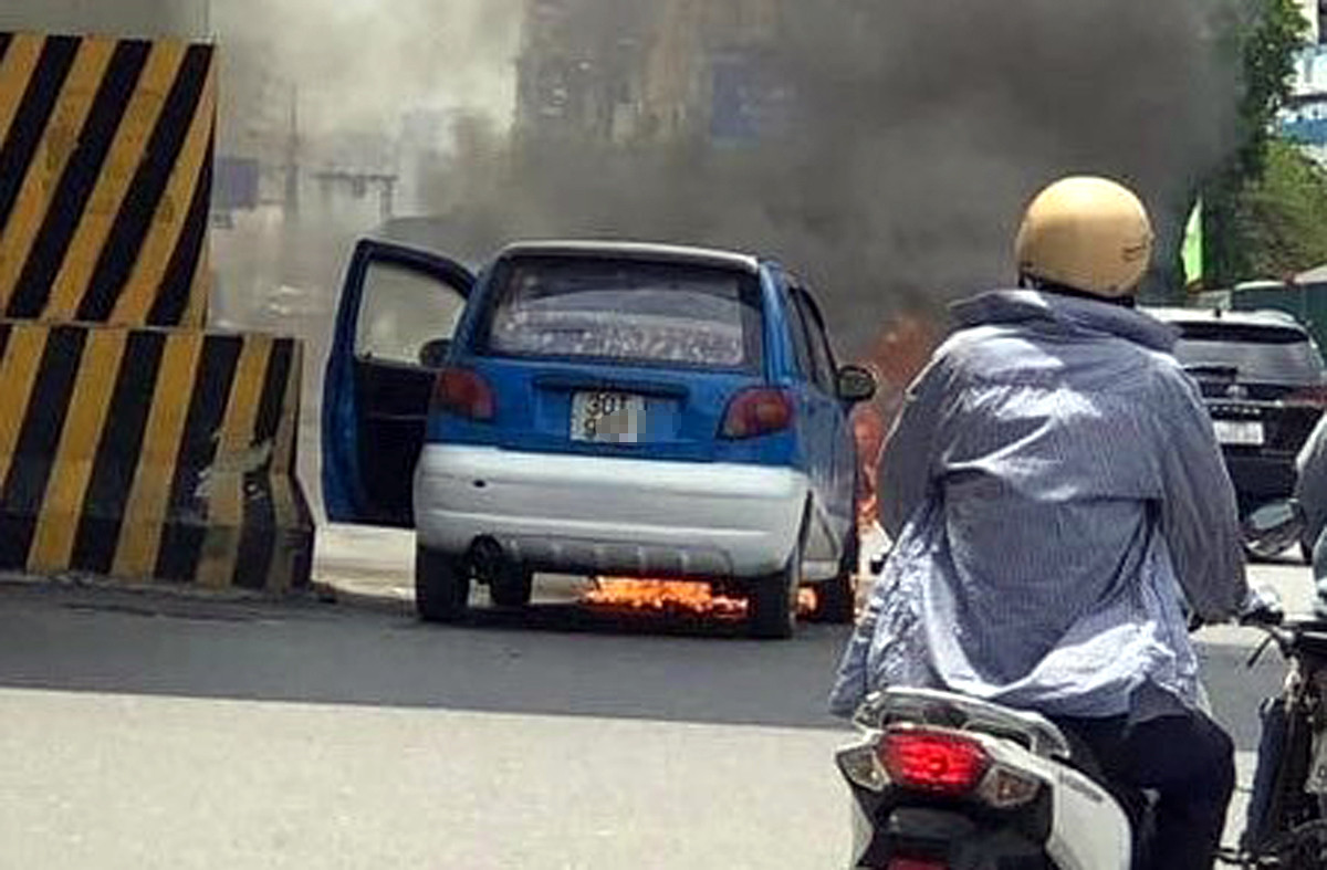 Thời điểm đó, vào khoảng 10h50, anh T. gọi người của xưởng sửa chữa đến để kích điện bằng bình ắc quy. Nhưng sau khi vừa kích điện thì xảy ra chập cháy, ngọn lửa bốc cao ở phần đầu xe tạo thành cột khói đen.