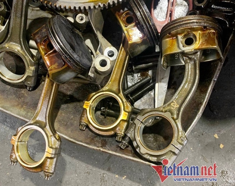 Nếu lúc này, lái xe cố khởi động lại động cơ, hệ thống hút gió sẽ tiếp tục hoạt động, các piston được trục khuỷu đẩy lên rất nhanh để nén khí gặp lực chặn của nước lọt vào buồng đốt sẽ làm ép tay biên (tay dên) biến dạng.