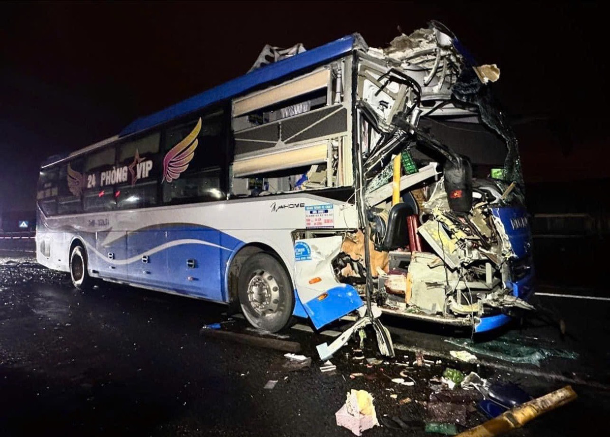 Xe khách tông đuôi xe đầu kéo trên cao tốc Vĩnh Hảo - Phan Thiết, phụ xe tử vong
