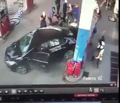 Tài xế lùi xe đâm đổ cây xăng cùng loạt xe máy và hành động gây bức xúc