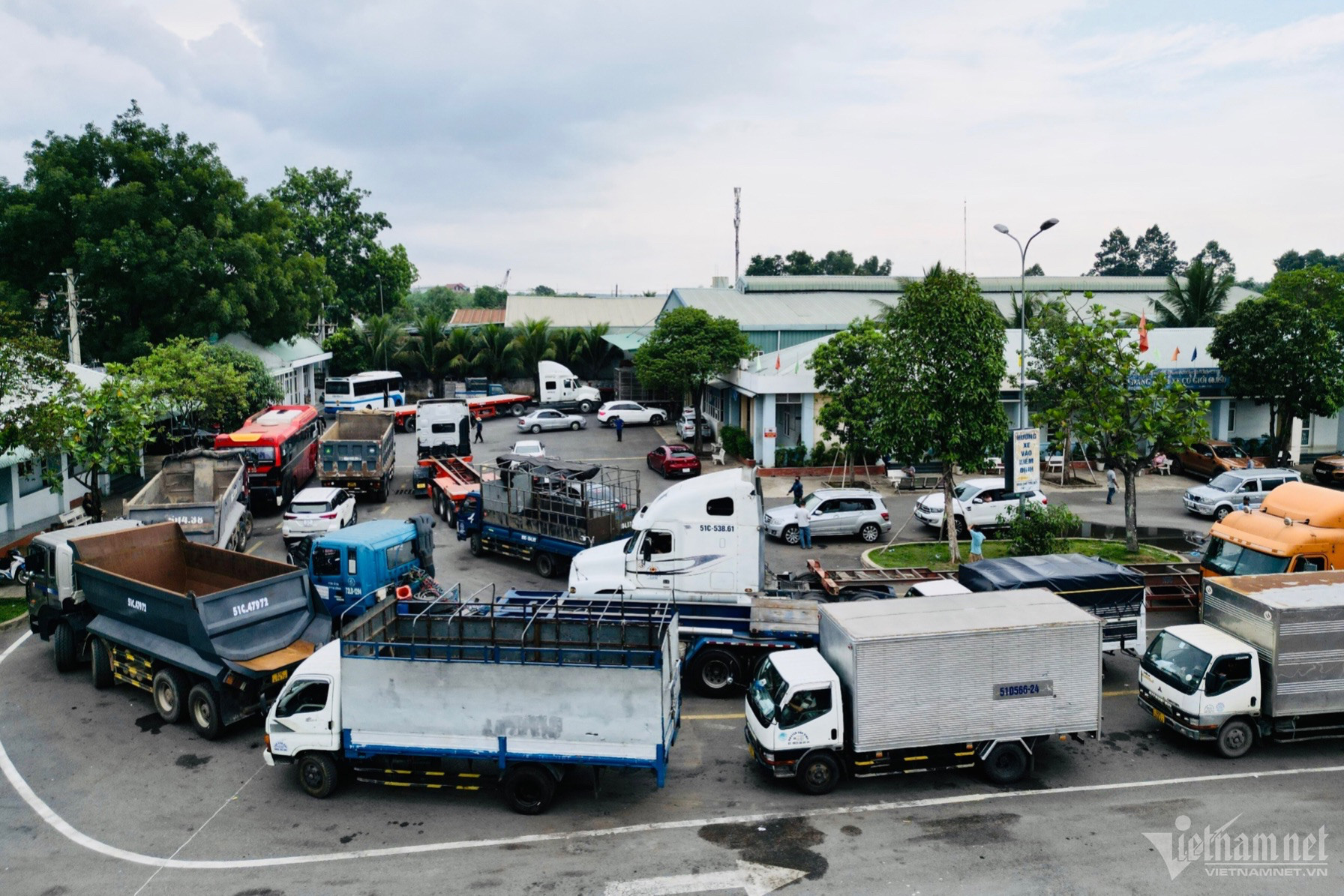 Trước cổng Trung tâm đăng kiểm xe cơ giới 60.01S (phường An Bình, TP Biên Hòa; địa điểm đăng kiểm lớn nhất của tỉnh Đồng Nai), các xe tải xếp hàng bên phải, ô tô con xếp hàng bên trái kéo dài hơn 1km.