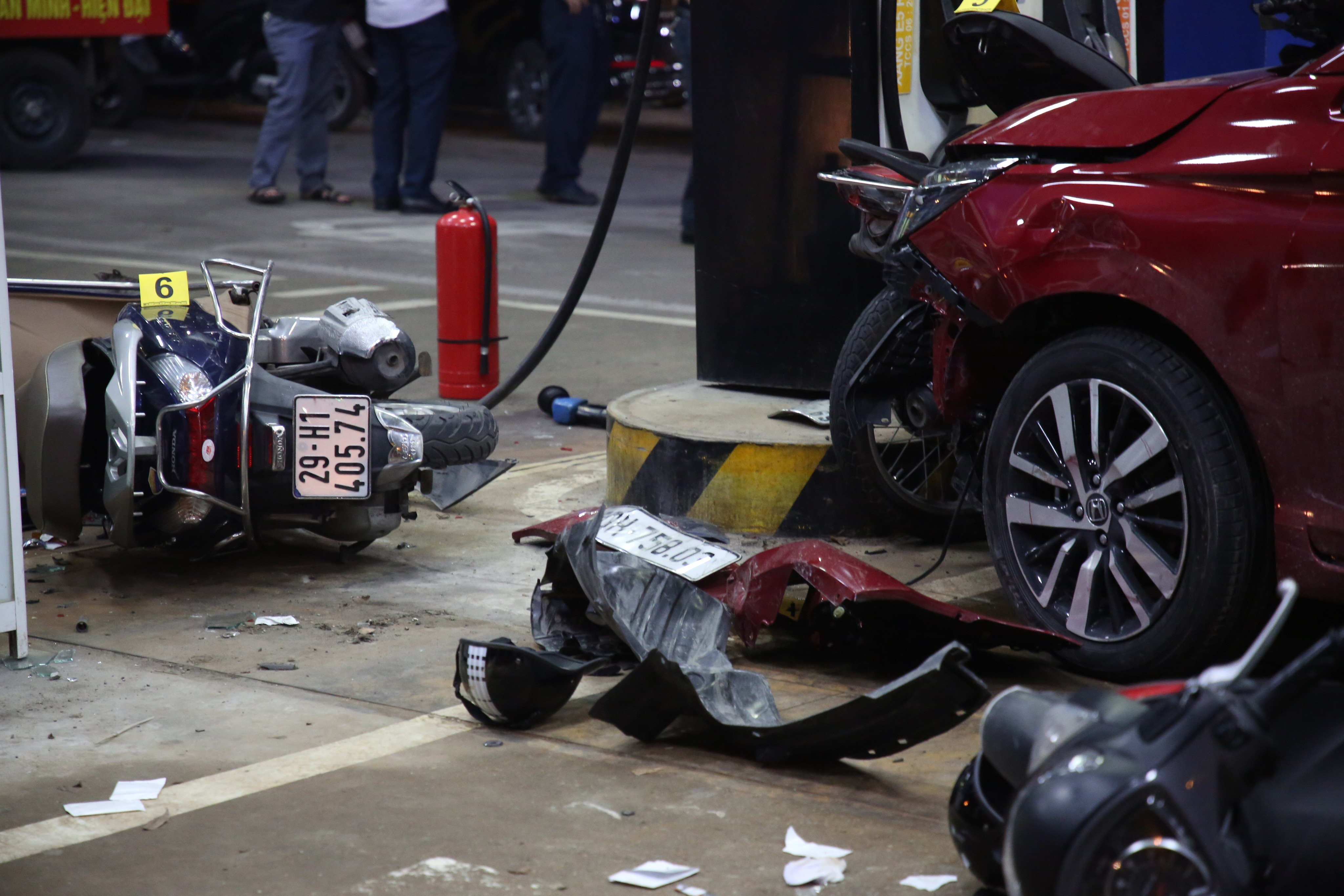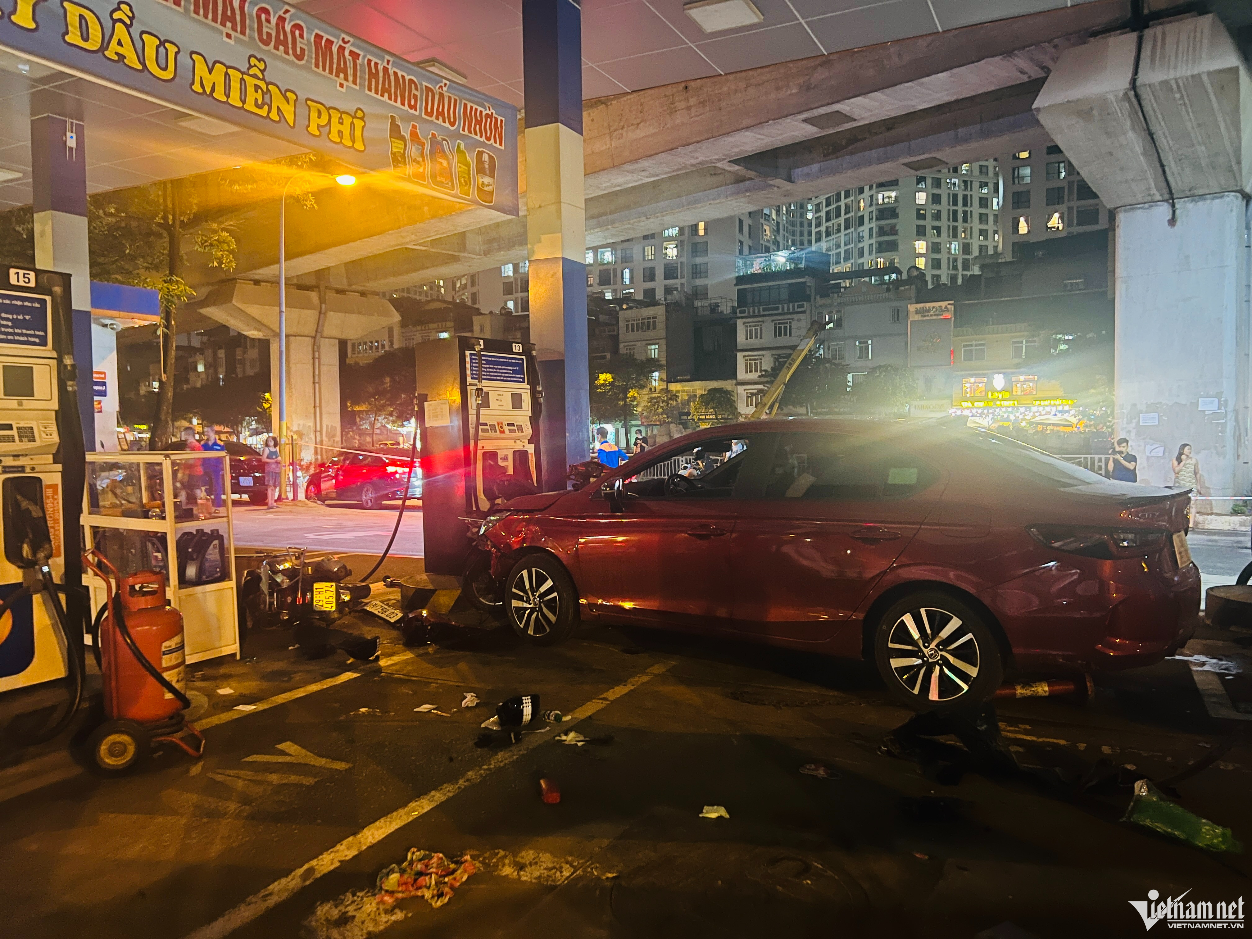 Thời điểm trên, xe ô tô hiệu Honda City mang BKS 30H- 758.XX do nam tài xế điều khiển bất ngờ lao vào cây xăng, nơi có nhiều người đang đổ xăng bên trong.