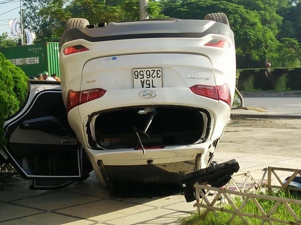 Đổ đèo tốc độ cao, ô tô lật nghiêng giữa đường