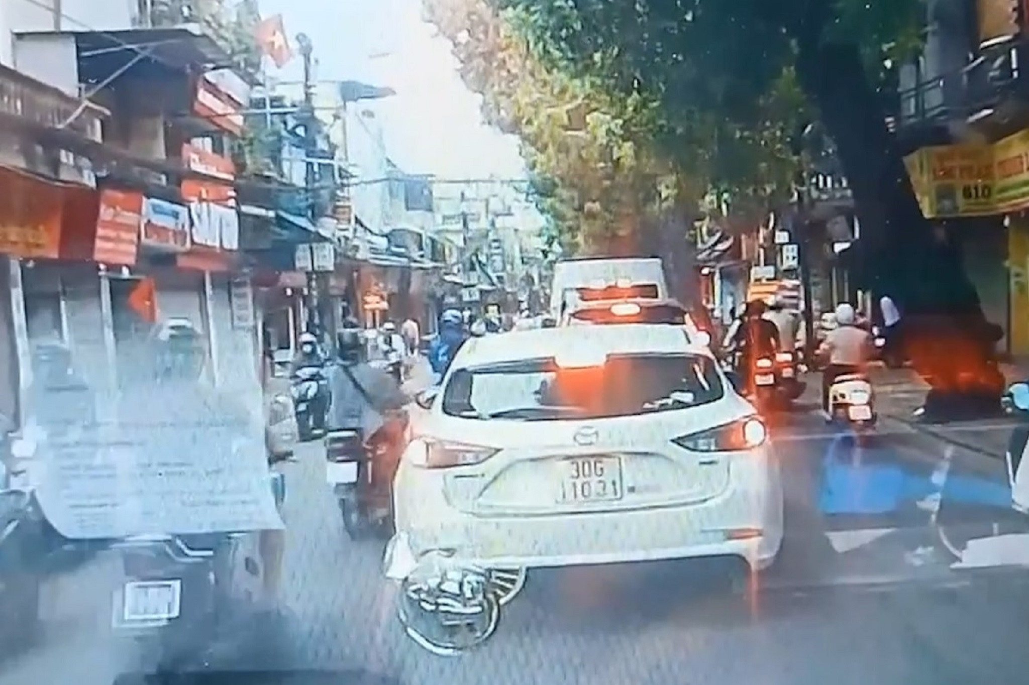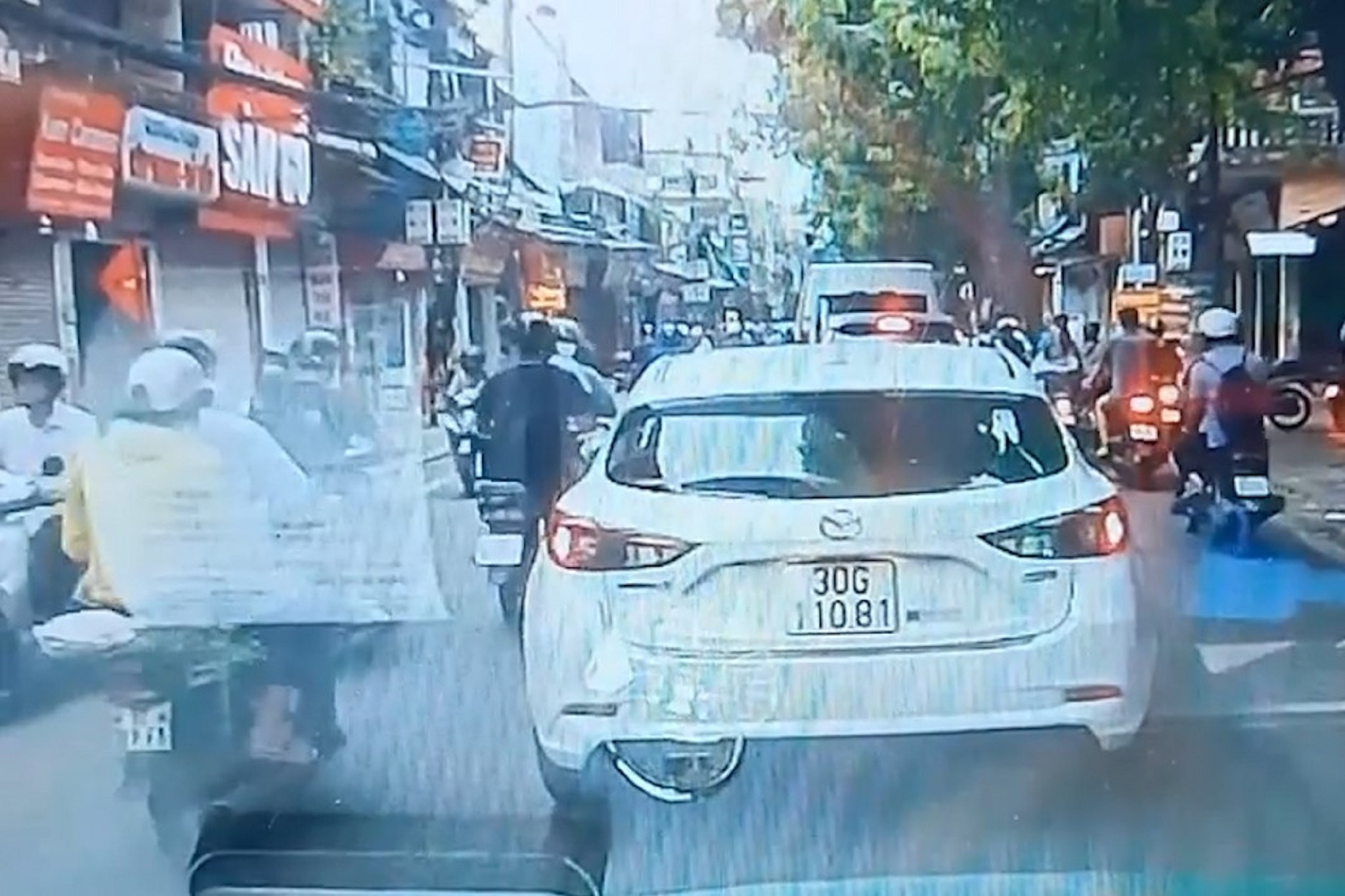 Theo hình ảnh trong clip, khoảng 7h sáng cùng ngày, ô tô nhãn hiệu Mazda mang biển kiểm soát 30G - 110.31 đang lưu thông trên đường Đê La Thành, khi đến trước cửa số nhà 610 Đê La Thành (Ba Đình) thì một người đi đường bất ngờ “lột sạch” băng dính che biển của xe. Sau khi bóc băng dính, chiếc xe này về đúng biển kiểm soát của mình là 30G- 110.81.