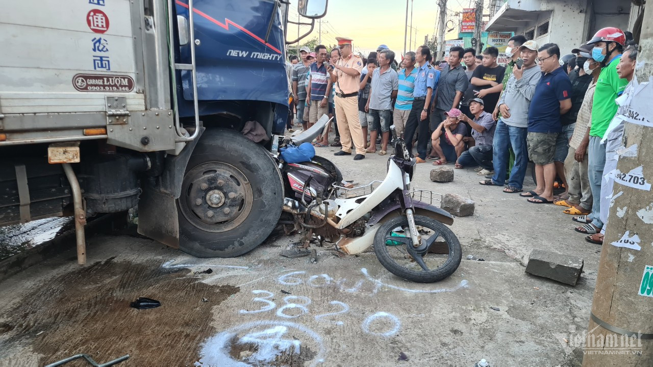 Một số người chứng kiến cho biết, khi anh C. đang sang đường, xe tải không thắng kịp đã tông vào xe máy, tiếp tục đâm vào cột đèn bên đường mới dừng lại.