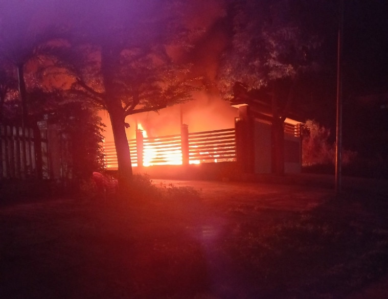 Theo Công an huyện Hướng Hóa, lửa bắt nguồn từ ô tô nhãn hiệu Mercedes lan sang xe máy đậu cạnh bên. Trong phút chốc, ngọn lửa bao trùm sân nhà và thiêu rụi hoàn toàn cả 2 phương tiện.