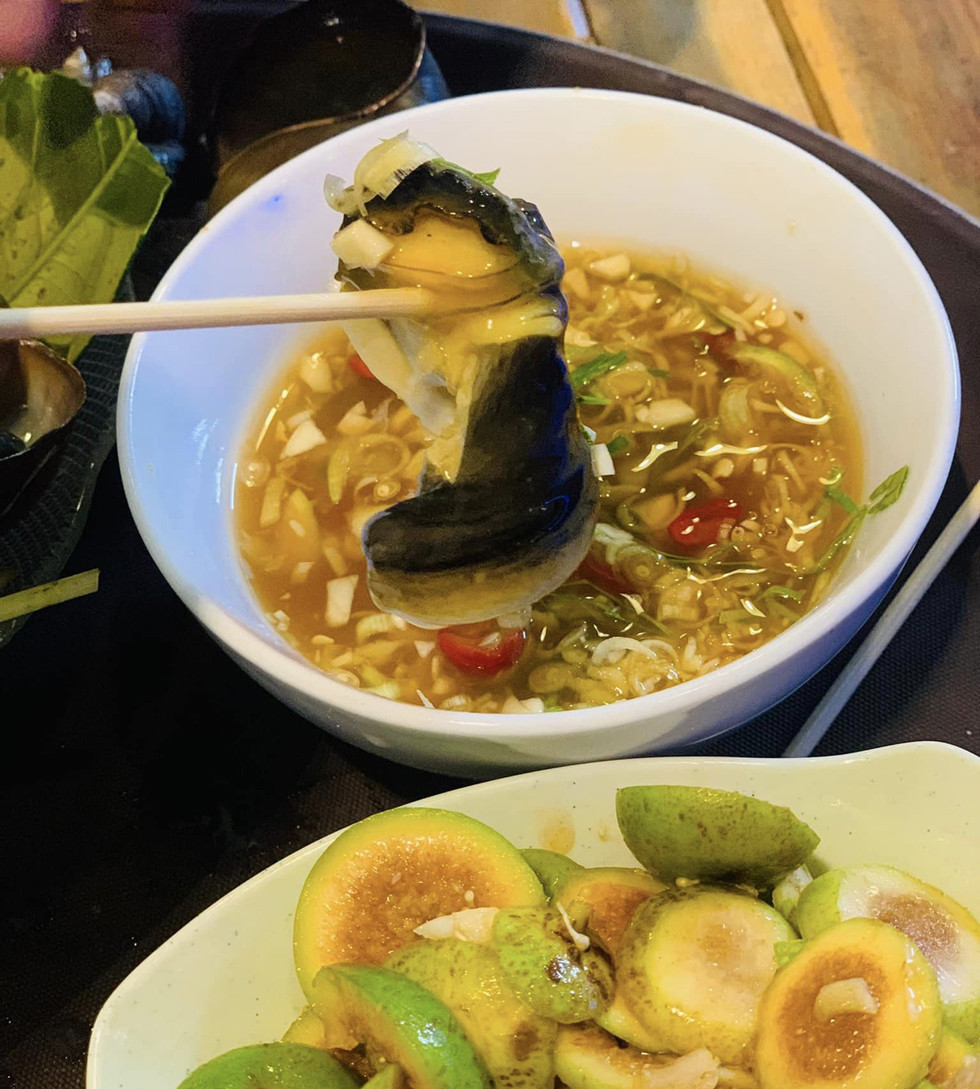 “Món này cũng đòi hỏi phải thưởng thức một cách từ từ để cảm nhận từng chút một hương vị của nó. Thịt ốc giòn, ngọt, thơm mùi khói, hòa quyện với chút chua cay mặn của nước mắm đủ khiến ai nấy đều xuýt xoa”, chị Lý bày tỏ.