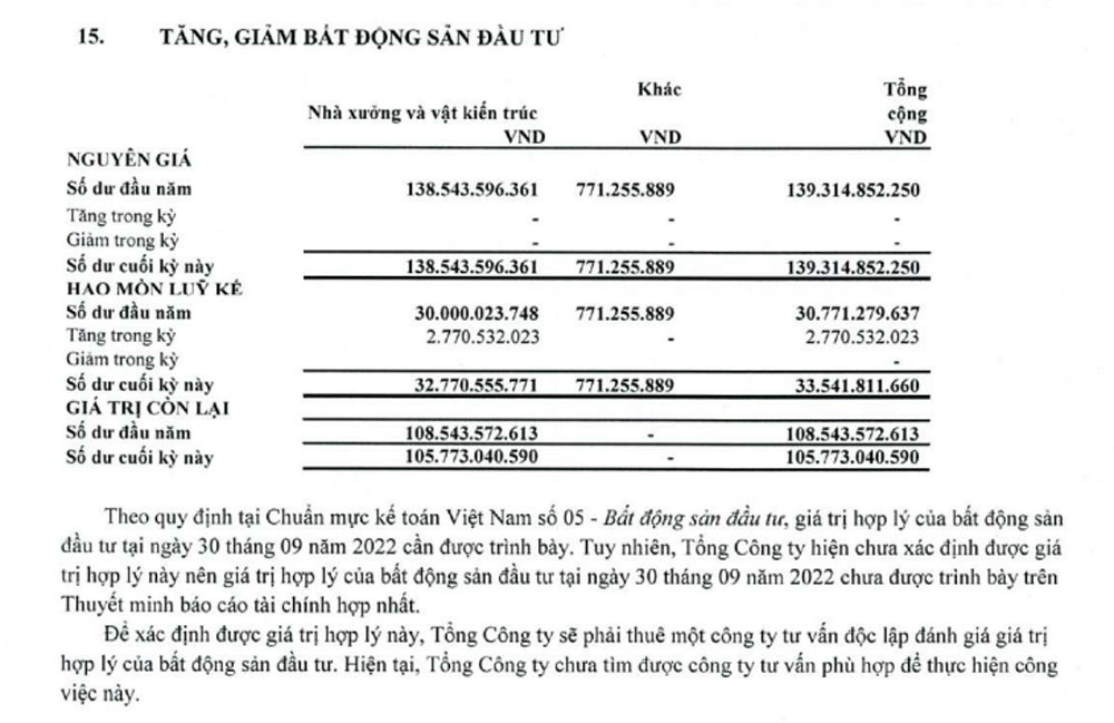 Theo báo cáo tài chính, PVOil có khoản mục bất động sản đầu tư, theo Chuẩn mực kế toán Việt Nam cần phải trình bày giá trị hợp lý vào 30/9/2022. Tuy nhiên, doanh nghiệp này cho biết chưa xác định được giá trị hợp lý nên chưa trình bày trong báo cáo. Hiện, PVOil chưa tìm được công ty tư vấn phù hợp để thực hiện công việc này.