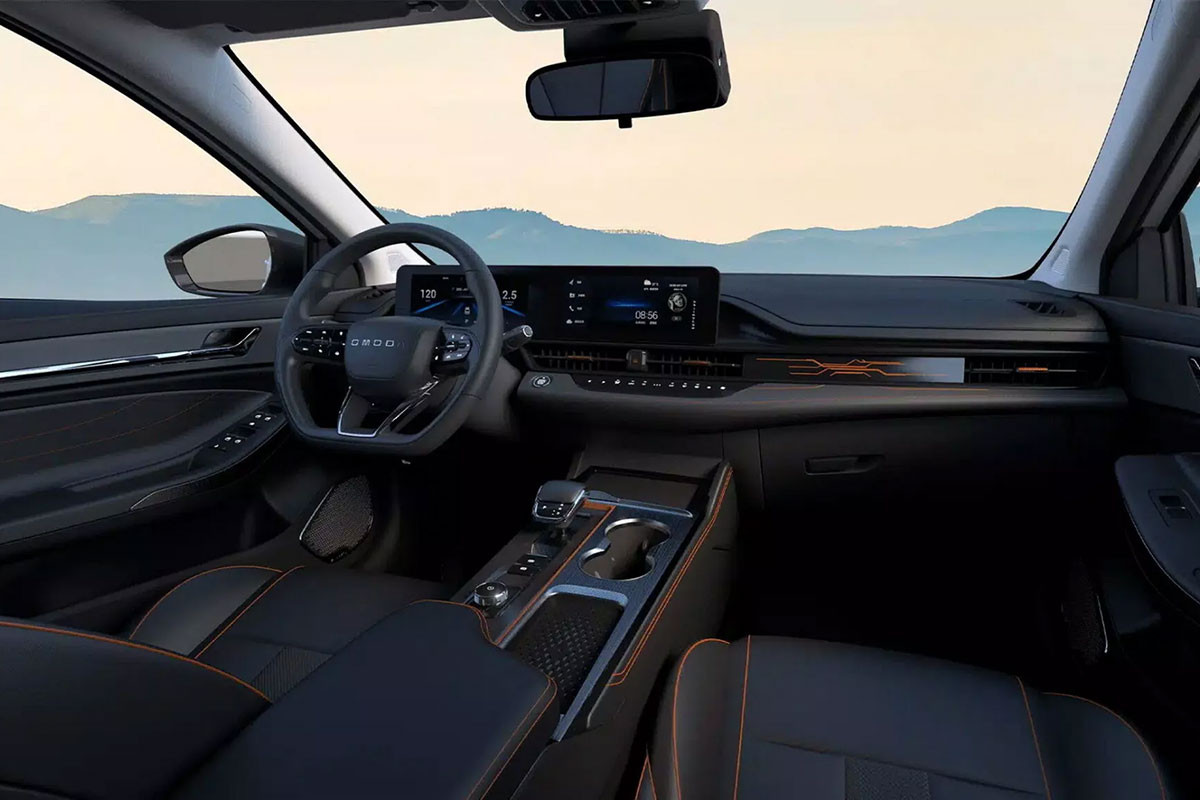 Bên trong, Omoda O5 GT có màn hình kép 10,25 inch liền mạch thành một khối kiểu Mercedes-Benz. Những điểm nhấn nội thất thể thao bao gồm tấm ốp trang trí giả carbon và đường viền crôm sáng bóng, ghế ngồi thể thao khâu chỉ đỏ, bàn đạp bọc nhôm. Bản cao cấp có tùy chọn sấy và làm mát ghế cùng hệ thống hỗ trợ lái ADAS.