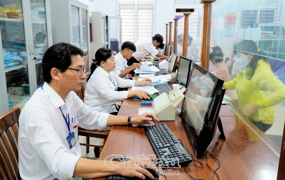 Công chức Bộ phận Một cửa UBND Phường 5, TP Cà Mau, hàng ngày tiếp nhận rất đông người dân, doanh nghiệp đến nộp hồ sơ.