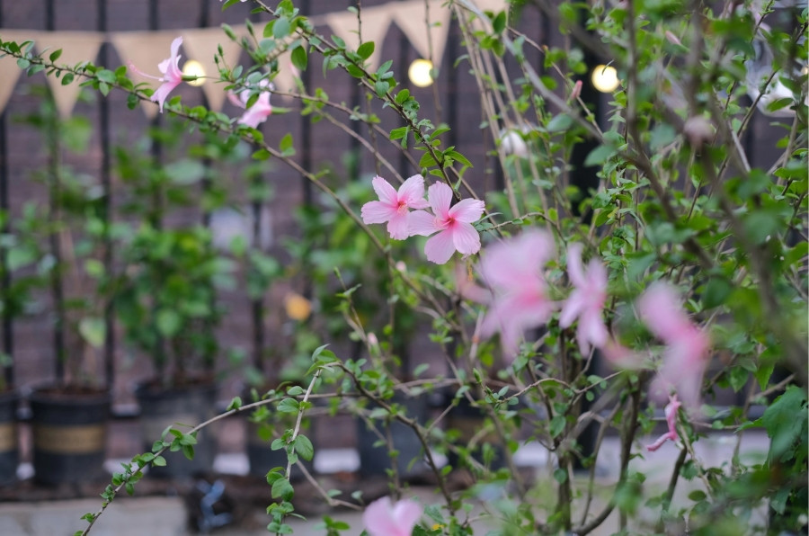 Ngoài ra, anh Tùng trồng kết hợp các loại hoa đuôi công xanh, bạch tuyết hoa, kim ngân hoa, cây ướp trà chống ho... Để tạo độ sang trọng cho khu vườn, anh còn trồng tùng nho, tùng đuôi chồn hoa hồng, cẩm tú cầu…