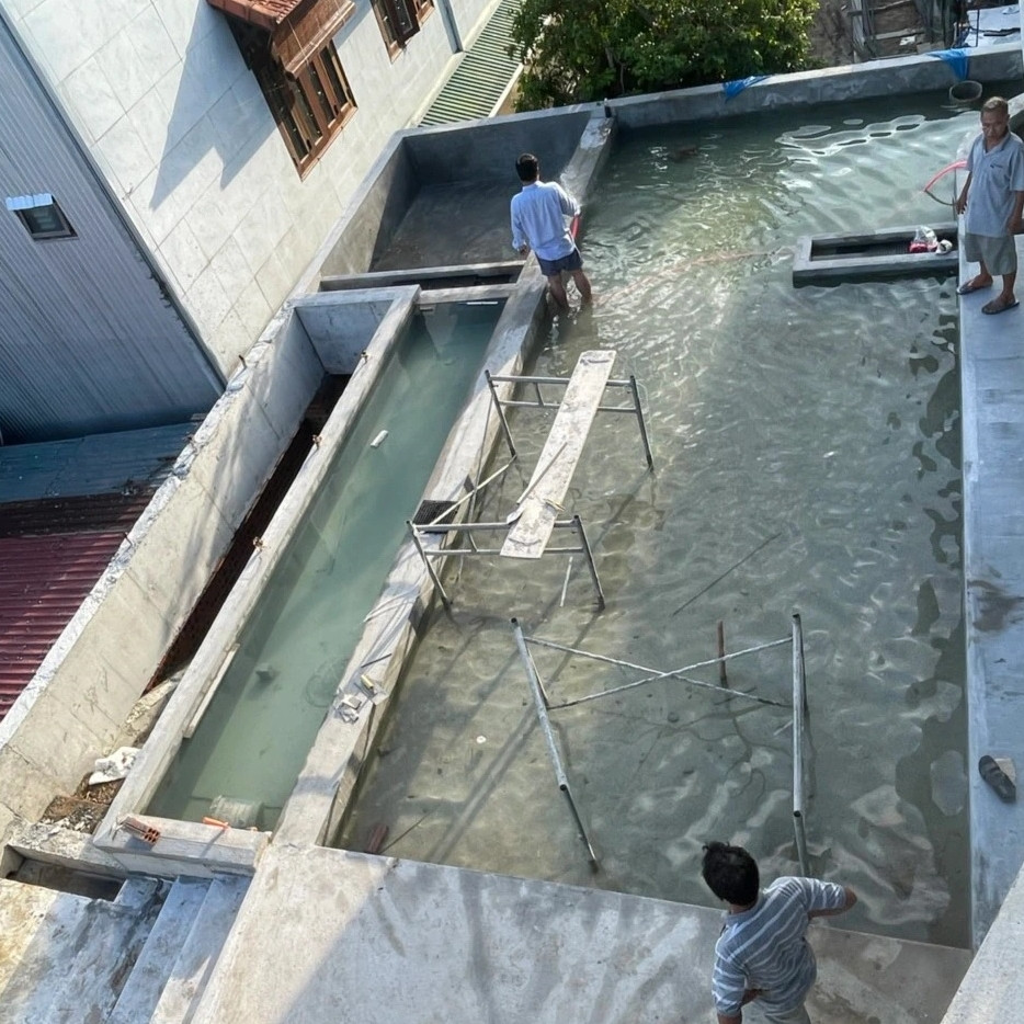 Trước đó, tôi từng làm việc ở TPHCM, thi công không ít công trình đưa bể bơi lên mái nhà. Về Huế làm việc, tôi thấy nhiều ngôi nhà sử dụng vật liệu chống thấm nhưng không tuân theo quy trình nhà sản xuất, hoặc không hiểu bản chất vật liệu, test (thử nghiệm) nước nếu có thì qua loa, đại khái".
