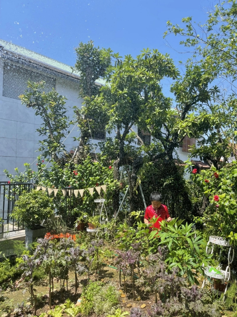 Sau nhiều trăn trở, vất vả, anh Tùng đã hoàn thành được khu vườn xanh tươi. "Nhiều người cảm thấy vô cùng ngạc nhiên khi tôi nói rằng, giữa mùa hè xứ Huế tôi không cần bật điều hòa. Tuy nhiên, đó là sự thật. Gia đình tôi có lắp đầy đủ điều hòa nhưng gần như không dùng.