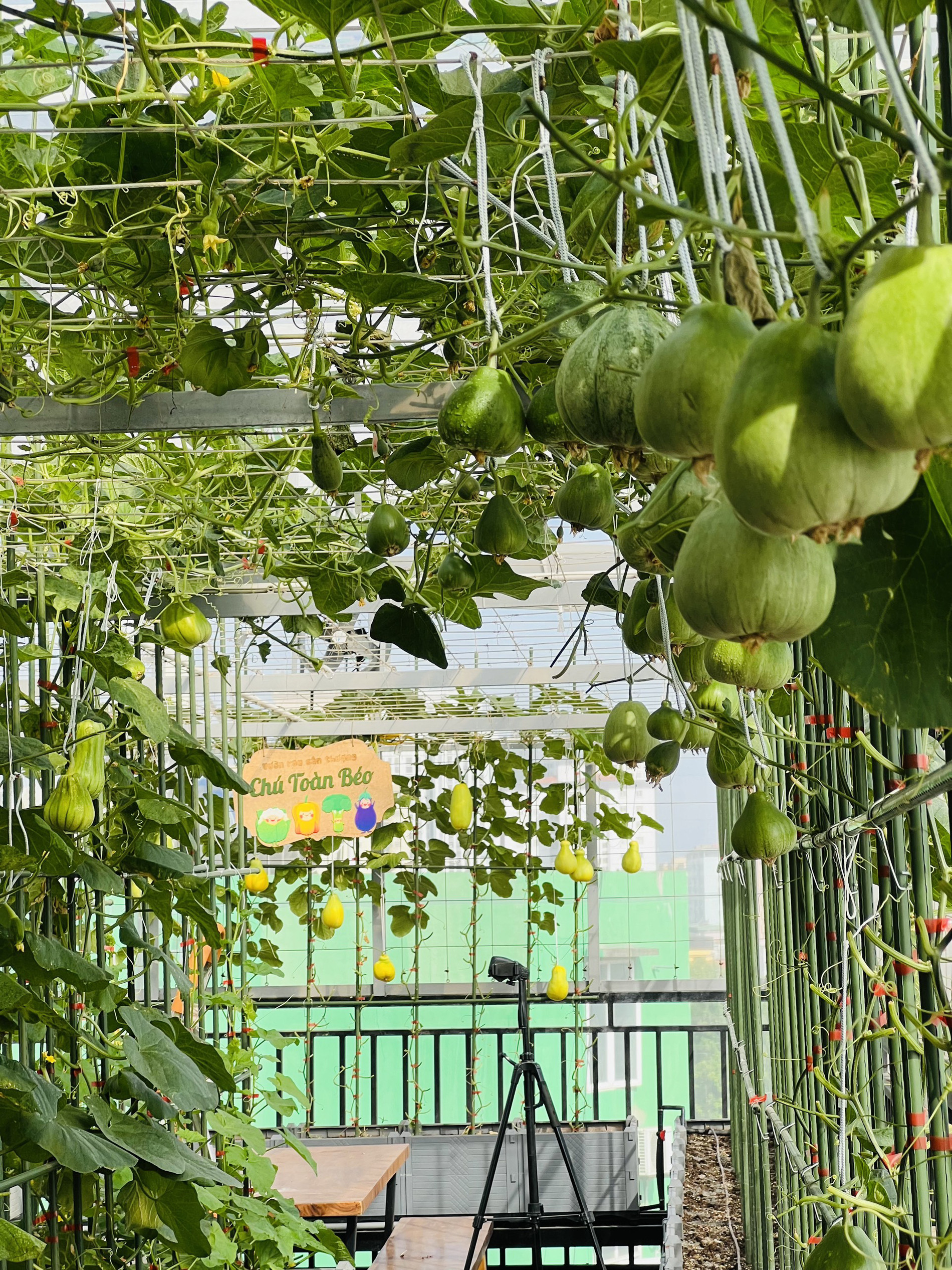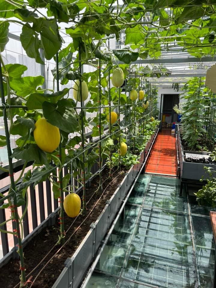 Khu vườn sân thượng được thiết kế khoa học, quanh năm có rau trái sạch