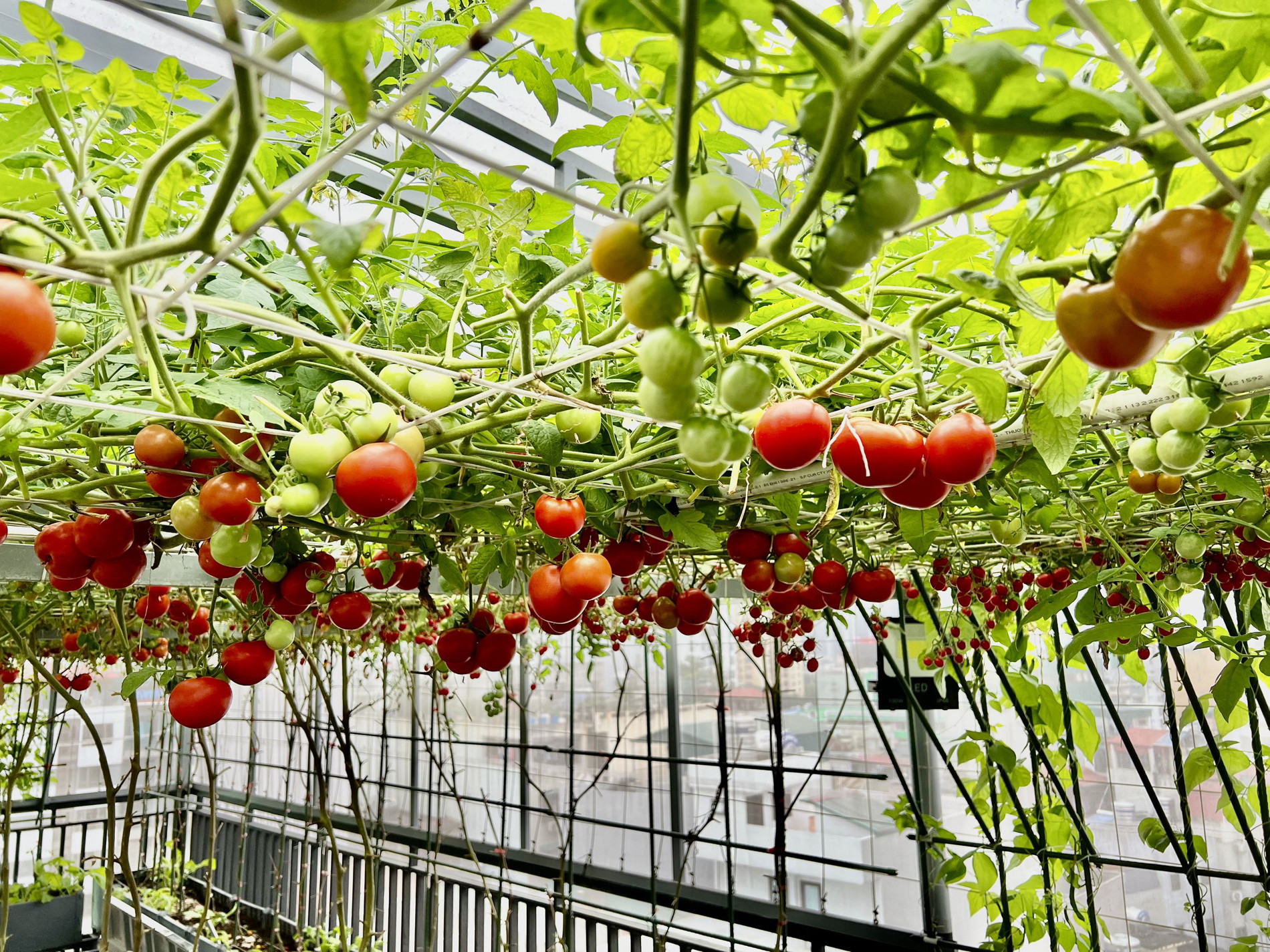 Khu vườn sân thượng của gia đình anh Toàn nằm trên tầng 8, rộng khoảng 60m2. Xung quanh vườn được bao phủ bởi các tấm lưới mỏng để hạn chế côn trùng gây hại cho cây.