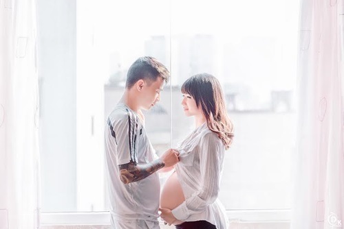 Bộ ảnh độc đáo: Ông bố “xăm trổ” âu yếm vợ bầu 8 tháng