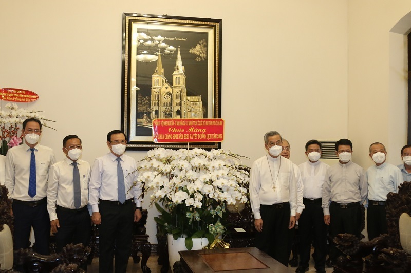 Đến thăm và chúc mừng giáng sinh, Bí thư Thành ủy TP.HCM Nguyễn Văn Nên gửi lời tri ân sâu sắc đến chức sắc, chức việc có hành động trực tiếp, gián tiếp hỗ trợ TP.HCM trong công tác phòng dịch.