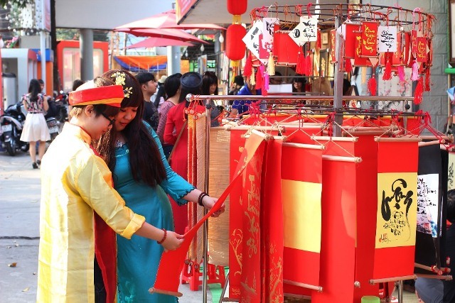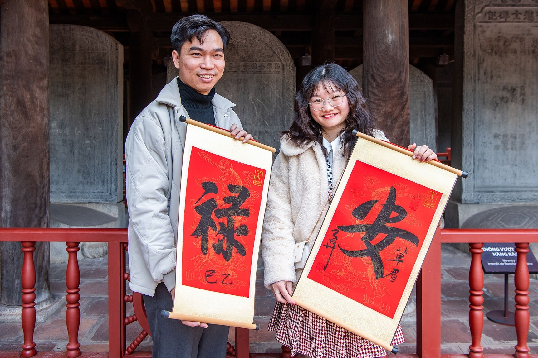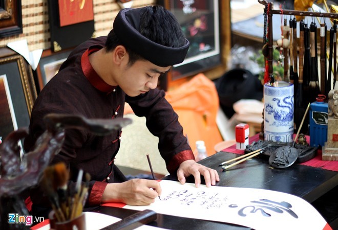 Ông đến với thư pháp đã hơn 10 năm. Năm nào cũng thế, cứ Tết đến, ông vào chùa viết thư pháp tặng bà con.