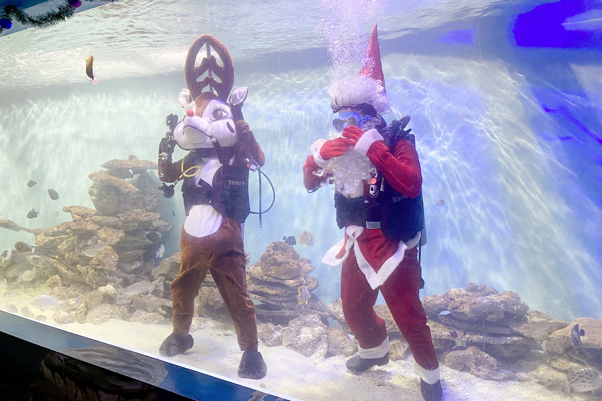 Khoảng 15h ngày 19/12, ông già Noel, tuần lộc và người tuyết bất ngờ xuất hiện trong bể kính tại đường hầm xuyên núi Cảnh Long. Họ bơi, lặn “khiêu vũ” cùng cùng đàn cá và trình diễn những tiết mục đặc sắc chào mừng lễ Giáng sinh.