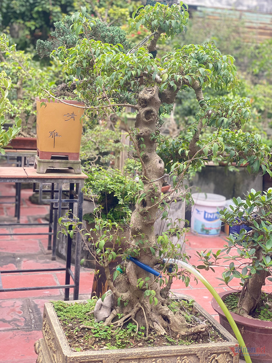 Vì tuổi tác cao nên nhiều năm trước ông đã giao “toàn bộ gia tài cây” lại cho con trai cũng là người rất yêu cây cảnh. Con trai ông hiện là người chăm sóc chủ yếu, ông chỉ phụ giúp mỗi khi thảnh thơi.