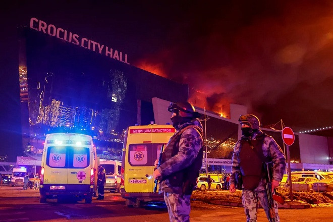 Hơn 130 người đã thiệt mạng tại địa điểm tổ chức buổi hòa nhạc ở phía tây bắc Moscow vào tối 22/3, khi một số tay súng bắt đầu bắn vào đám đông và đốt cháy hội trường. Một nhóm khủng bố tự xưng là Nhà nước Hồi giáo Khorasan (ISIS-K) đã nhận trách nhiệm.