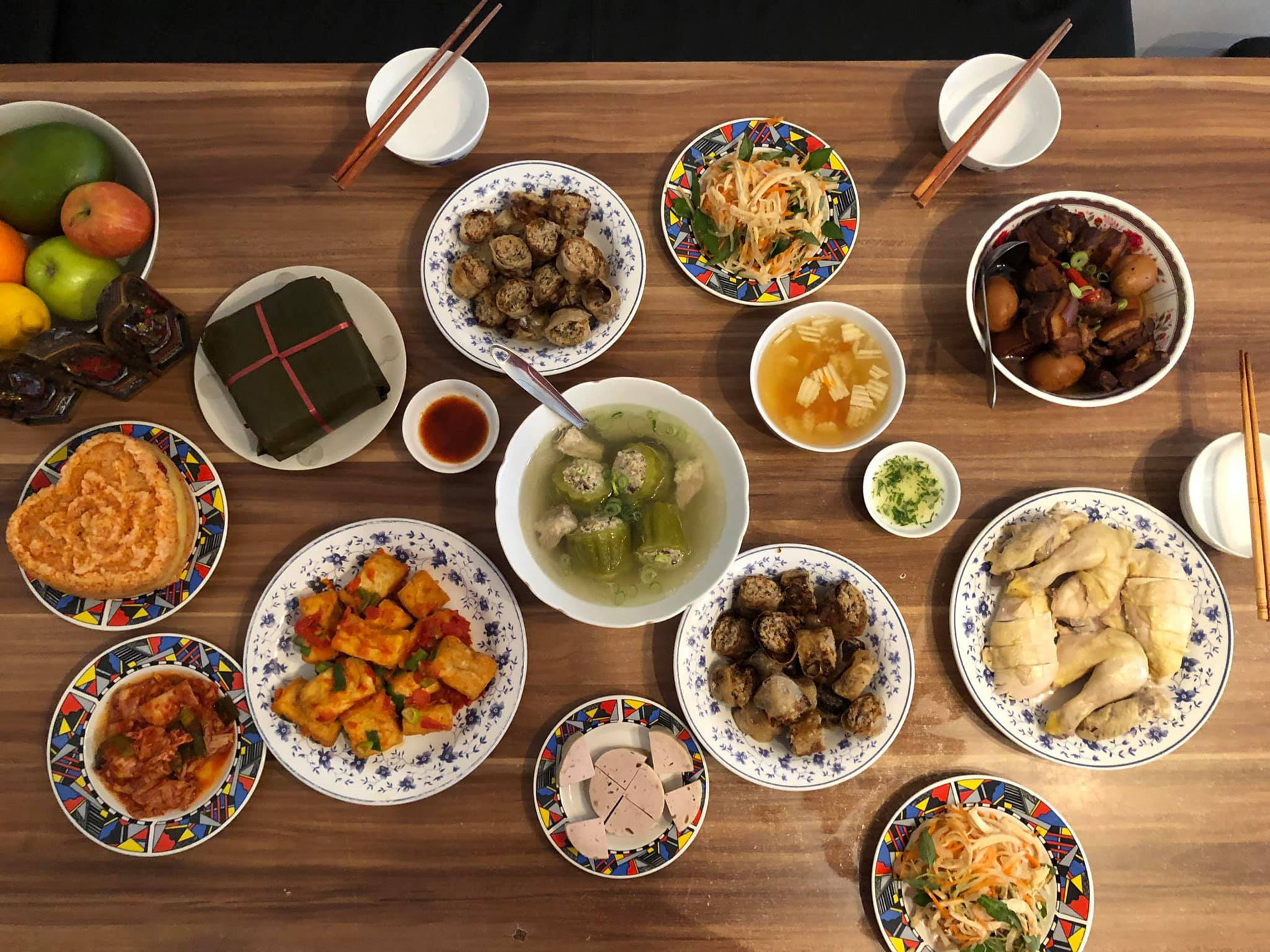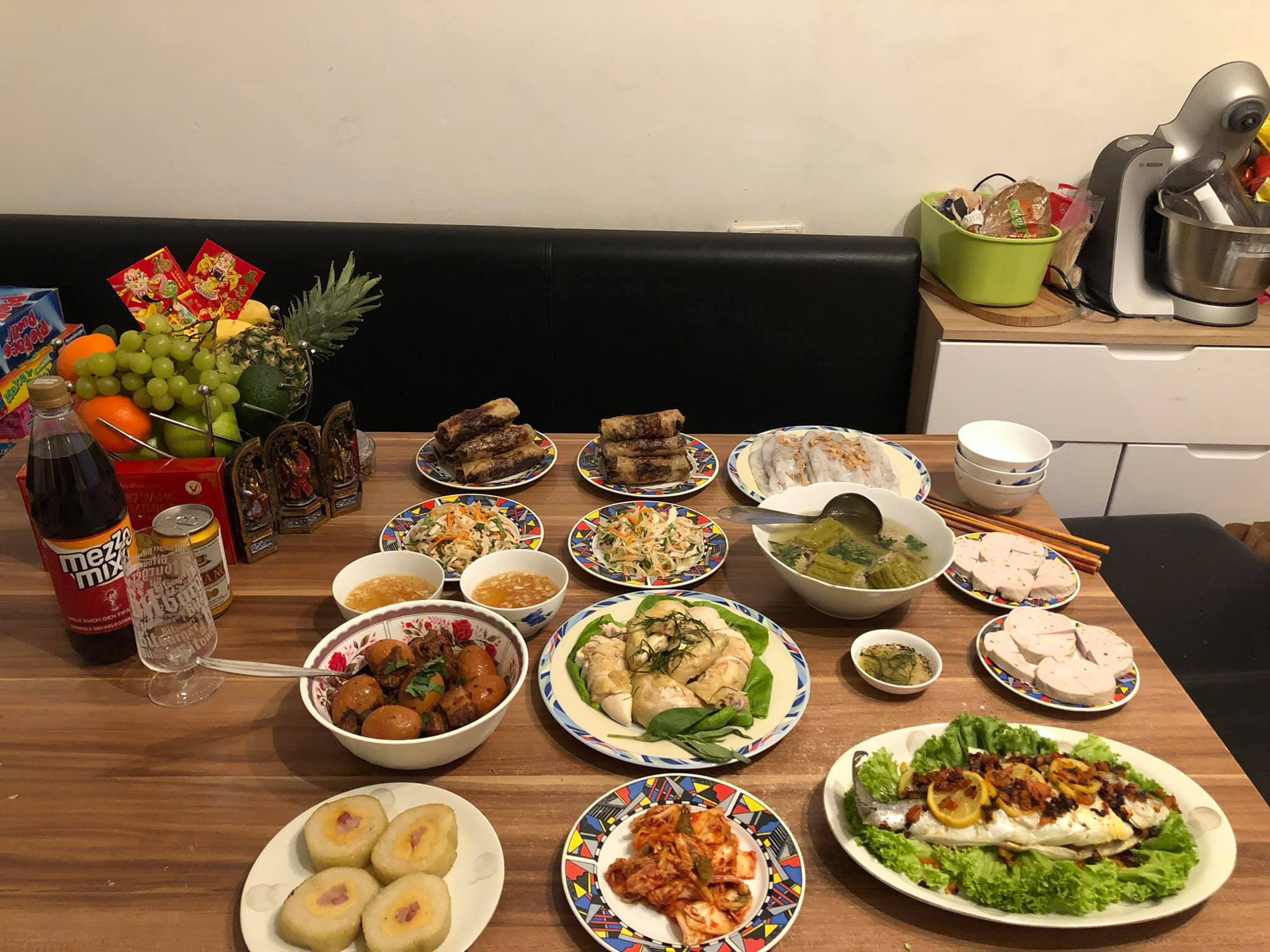 Mâm cơm ngày Tết mang đậm văn hóa Việt Nam được ông bố người Đức tự tay thực hiện