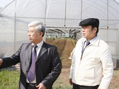 | Chủ tịch HĐTV-TGĐ Cty, TS Phan Minh Nguyệt (bên phải) dẫn Phó Giám đốc Sở NN- PTNT Hà Nội Đào Duy Tâm thăm vùng rau an toàn Đan Phượng. |