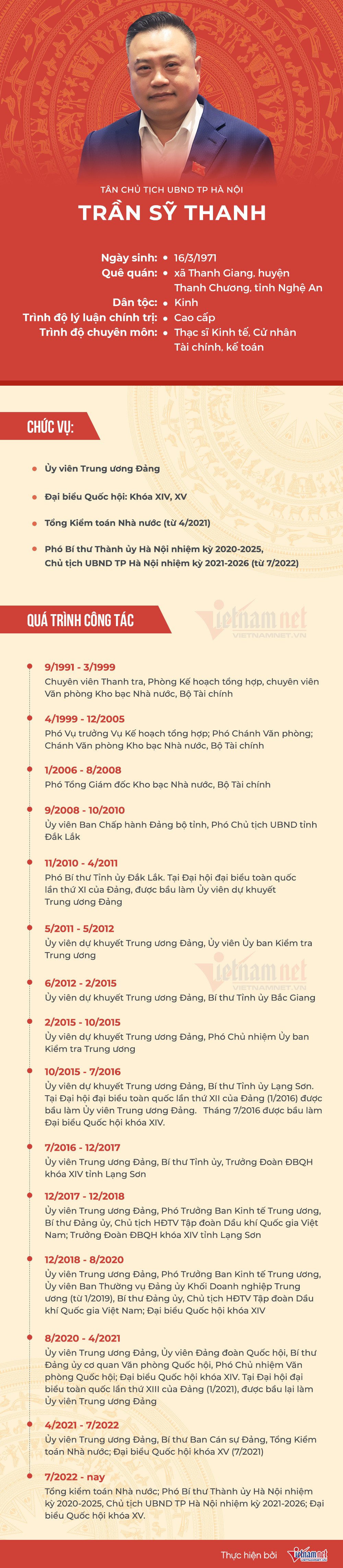 Hà Nội hiện có Chủ tịch UBND TP Trần Sỹ Thanh; các Phó Chủ tịch UBND TP gồm các ông: Lê Hồng Sơn, Nguyễn Trọng Đông, Dương Đức Tuấn, Hà Minh Hải, Nguyễn Mạnh Quyền, Chử Xuân Dũng.