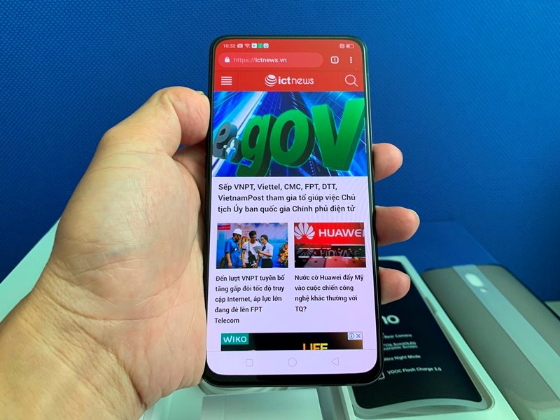 ictnews Oppo tung chiếc Reno tại Việt Nam, nổi bật với màn hình toàn cảnh panoramic, camera giấu trong màn hình. Trong đó có mẫu Reno 10x cho chất lượng ảnh khá tốt dù zoom tối đa. Giá bán máy 12,99 triệu đồng và 20,99 triệu đồng.