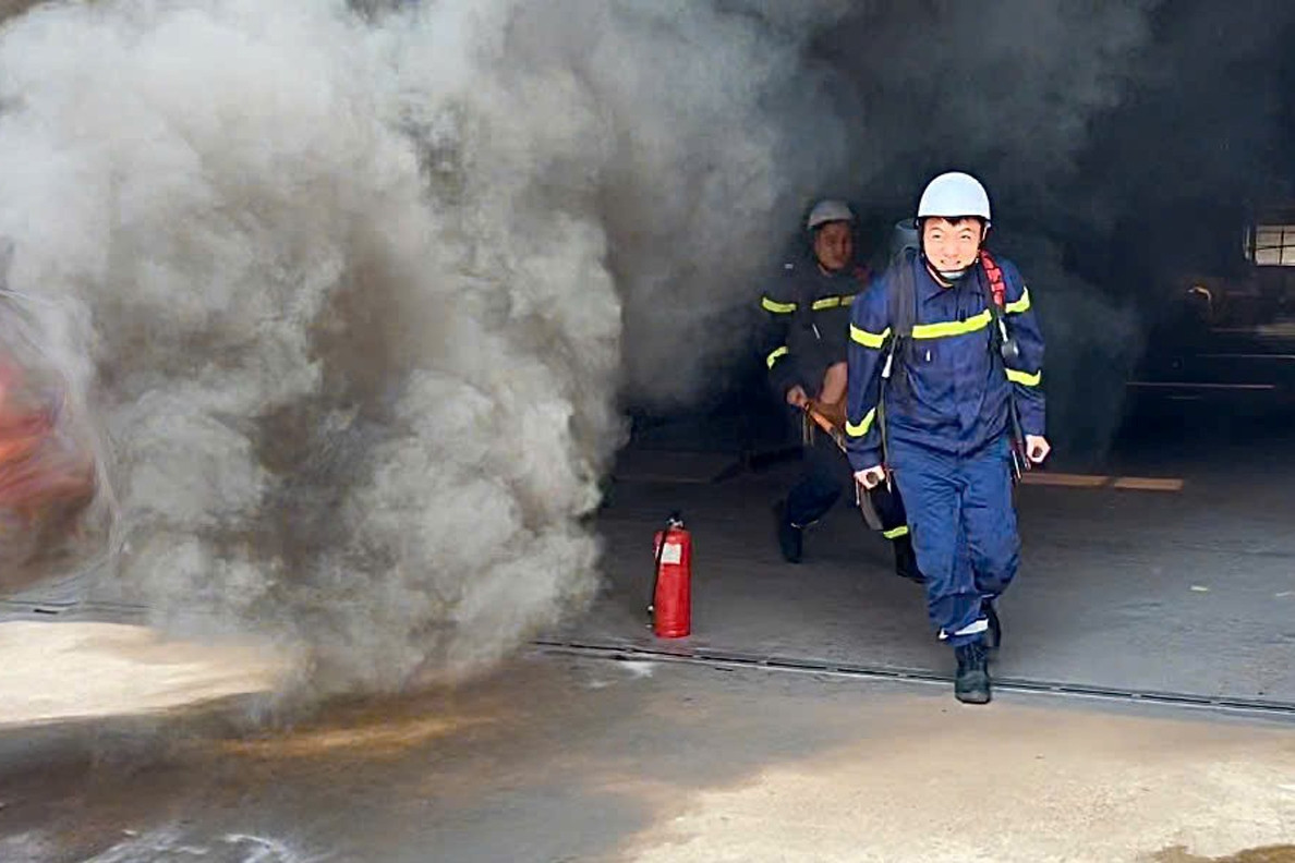 Công nhân kho xăng dầu đua tài chữa cháy, cứu hộ cứu nạn