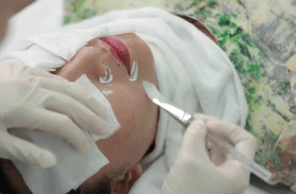 - Thoa tinh chất peel da: Dùng chổi để bôi các tinh chất lên vùng da cần thực hiện peel. Bạn cần chú ý thời gian phù hợp với nồng độ của hóa chất để được hiệu quả mong muốn.