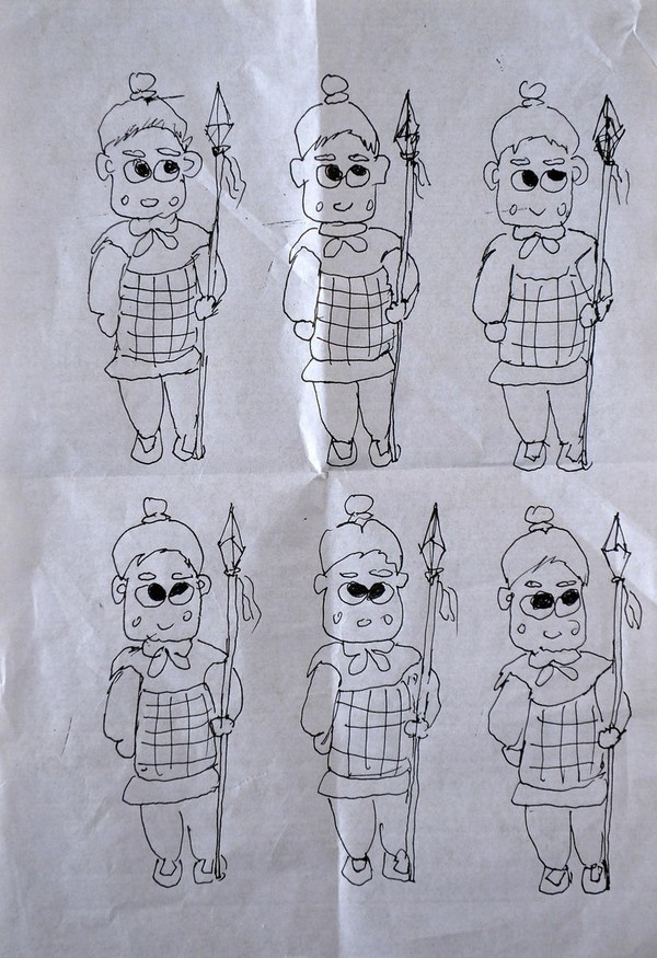 Sinh viên Châu Phong đã xin được vẽ hình tượng binh mã thay vì viết chữ. |