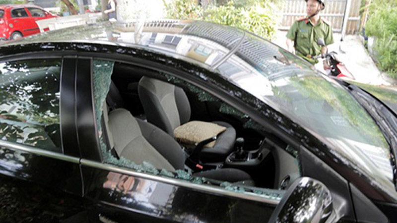 Giận gia đình vợ vì không cho rước con, gã đàn ông chạy ra đường chặn xe và đập vỡ kính của 3 ô tô.