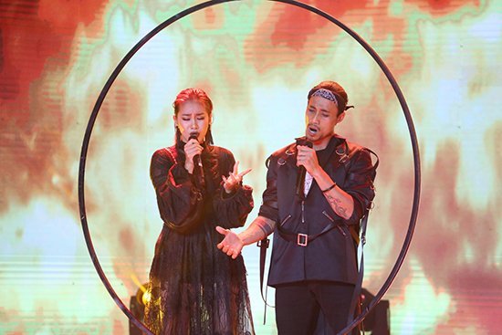 Trong đại nhạc hội vừa tổ chức tại TP.HCM tối 13/12, Nguyên Khang đã "thách thức' nữ ca sĩ Hoàng Thuỳ Linh thực hiện màn xoã tóc cùng mình và Hoàng Oanh trên sân khấu.