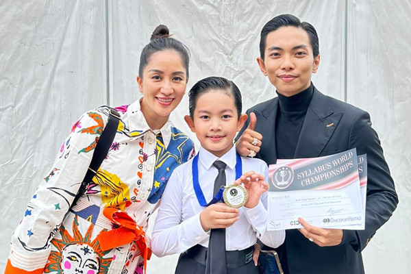 Khánh Thi chia sẻ tin vui với VietNamNet, con trai của chị và Phan Hiển - bé Nguyễn Minh Cường vừa đoạt huy chương Vàng Syllabus World Championship 2023.