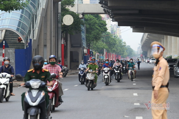 Rút kinh nghiêm từ việc ùn tắc nghiêm trọng tại chốt kiểm soát "vùng đỏ" Cầu Diễn, CSGT đã huy động thêm nhiều cán bộ, chiến sĩ chia làm nhiều điểm để phân làn giao thông.