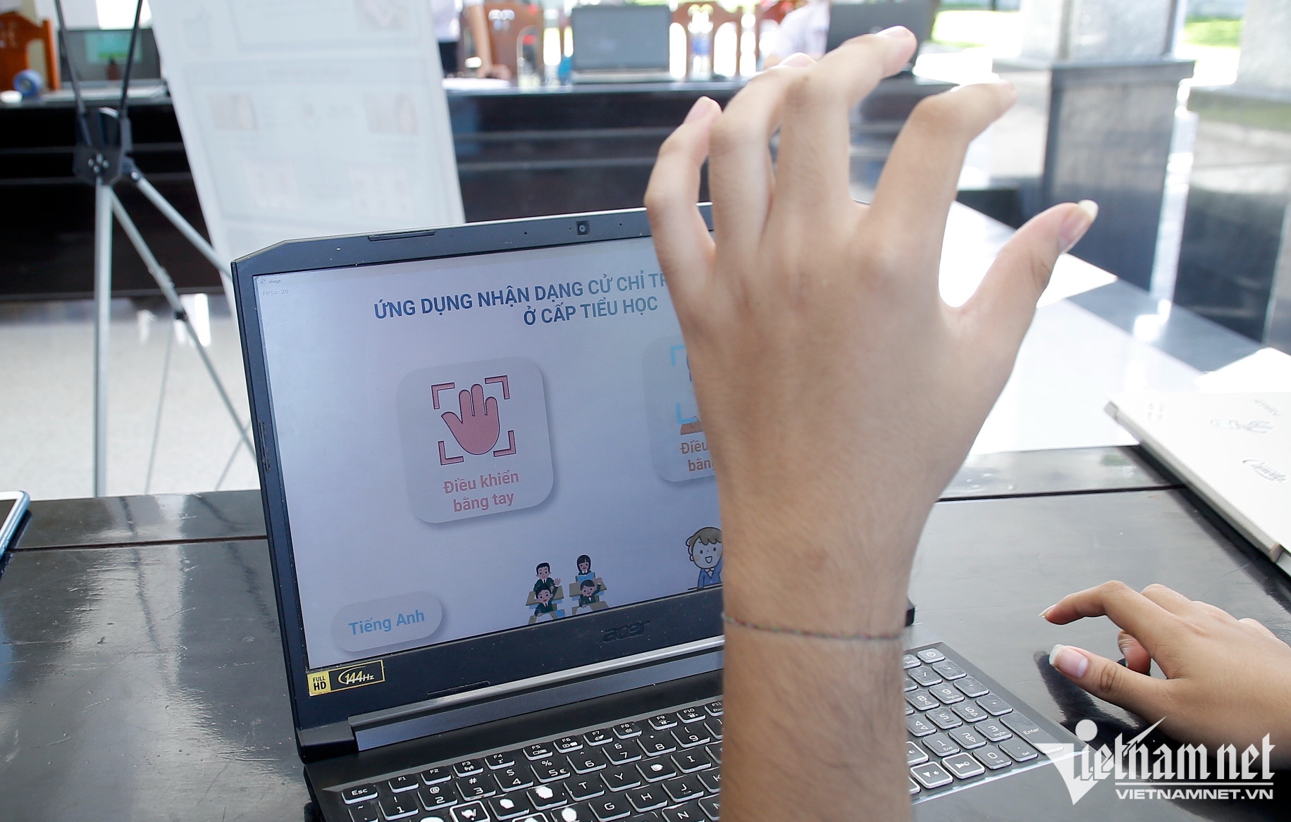 Từ đó, chúng em bắt đầu với câu chuyện dạy học cho học sinh khuyết tật vận động ở cấp Tiểu học. Đó là những bạn nhỏ khuyết tật một tay hoặc cả hai tay, và phần mềm ứng ụng kỹ thuật nhận dạng cử chỉ trong dạy học cho học sinh khuyết tật ra đời”.