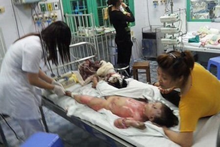 nguy kịch và qua nhiều lần phẫu thuật ghép da, sức khỏe của cháu bé đã tạm ổn