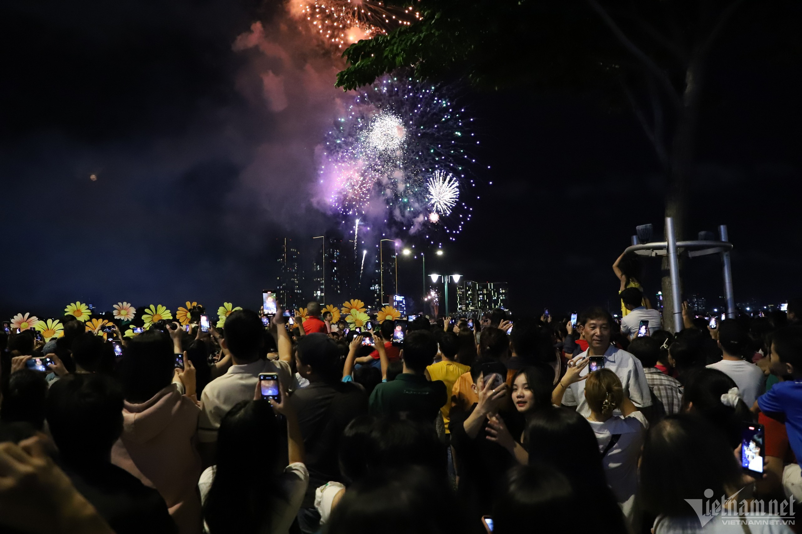 Sau khi hoạt động bắn pháo hoa kết thúc, dòng người ra về đặc kín các tuyến đường lân cận Công viên Bến Bạch Đằng như: Võ Văn Kiệt, Nguyễn Huệ, Nguyễn Hữu Cảnh...
