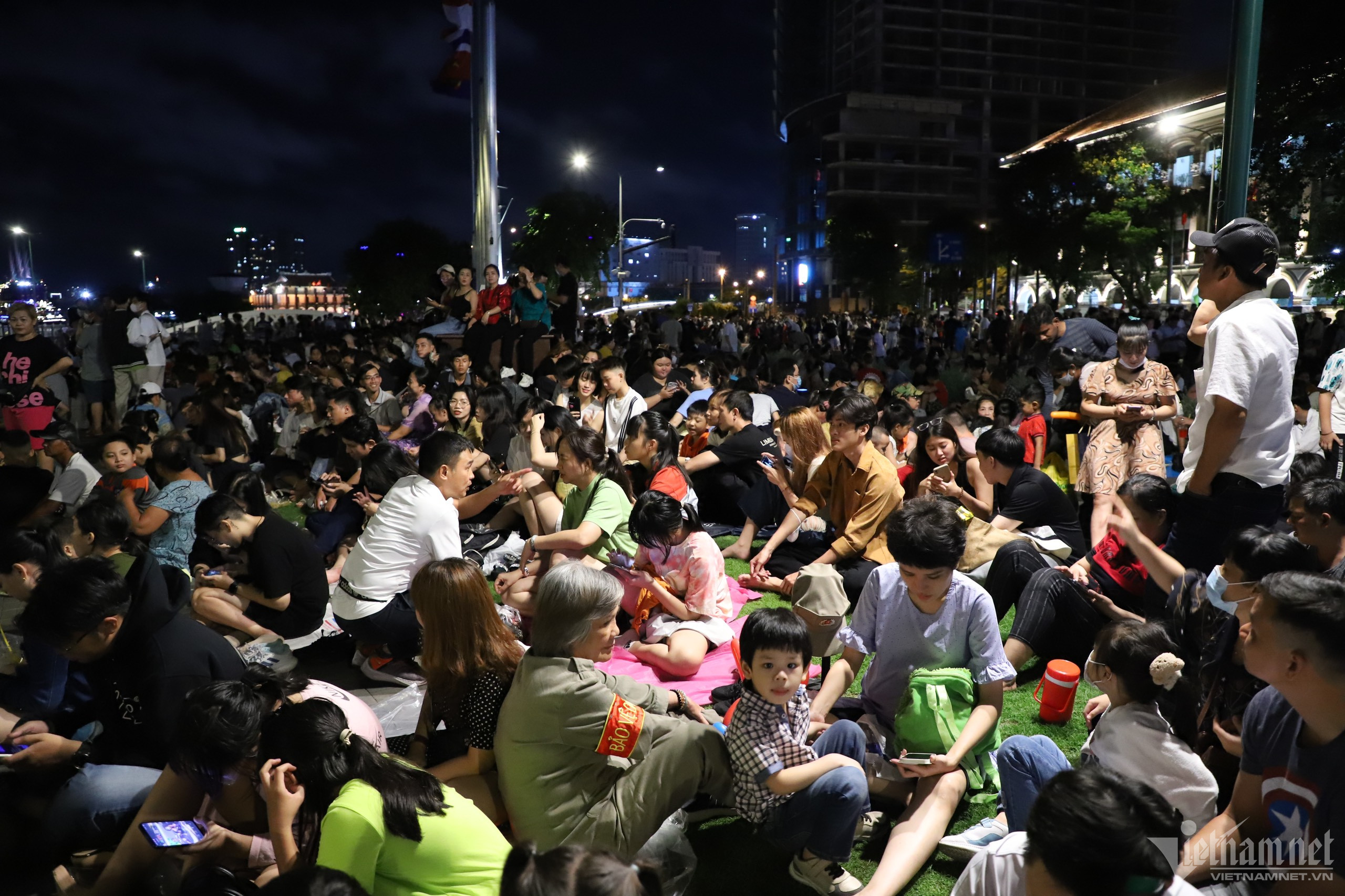 Ngay từ 19h, hàng chục nghìn người đã có mặt tại khu vực Công viên Bến Bạch Đằng (quận 1) để chờ đón màn trình diễn pháo hoa mừng ngày Quốc khánh bên bờ sông Sài Gòn.