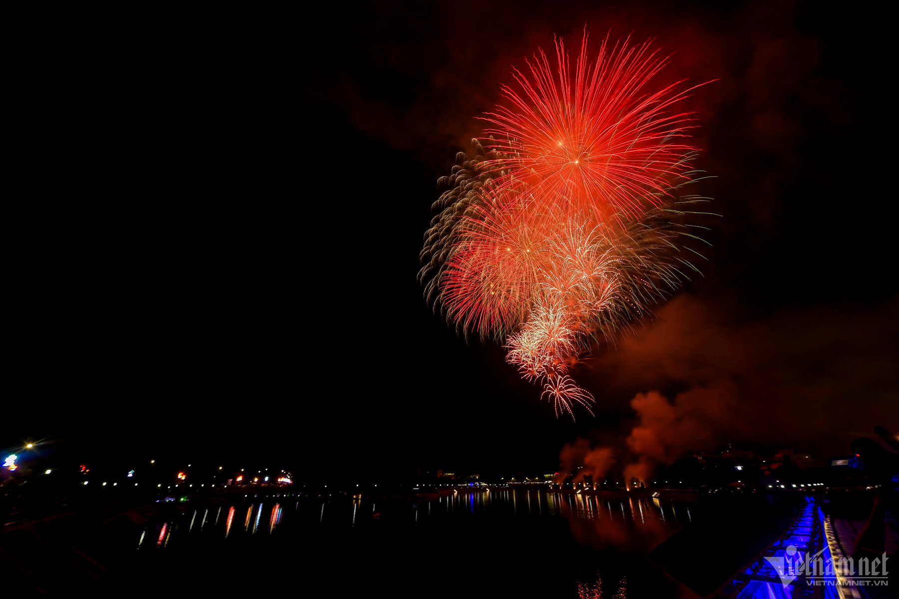 Khu vực bắn pháo hoa ở gần di tích hầm Đờ Cát và cây cầu Mường Thanh lịch sử.