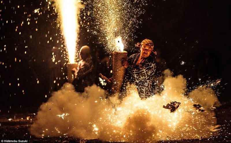 Lễ hội bắn pháo hoa bằng tay không ở Nhật