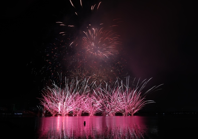 Đúng 21h, màn pháo hoa tầm cao mừng Quốc Khánh 2/9 được bắn lên trong tiếng hò reo của người dân Sài Gòn.