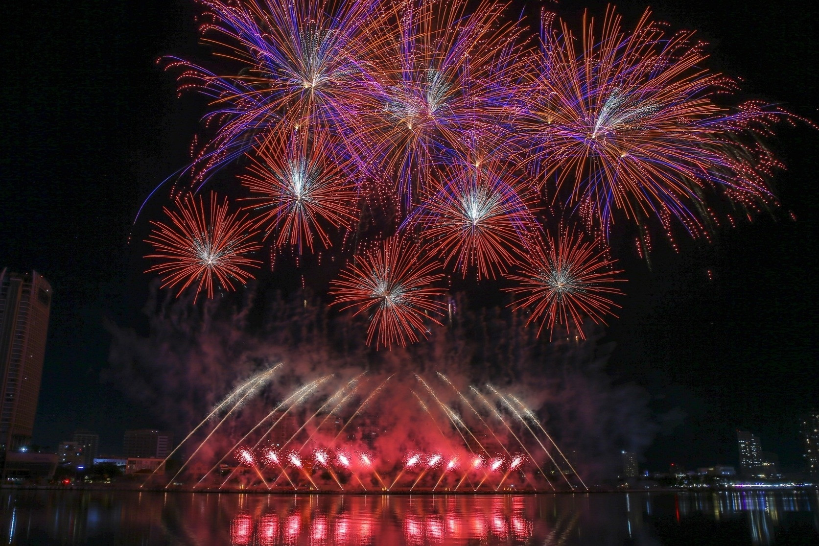 Đặc biệt, đội Trung Quốc tạo bất ngờ khi lồng ghép ca khúc Việt “Bắc Bling” vào màn pháo sôi động, đồng bộ với loạt pháo quét tầng trung và thấp chạy ngang mặt nước, tạo hiệu ứng như vũ điệu ánh sáng kết nối giữa hai nền văn hóa.