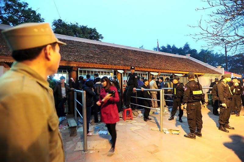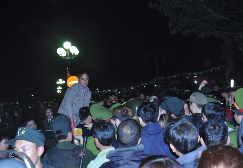 Không được ở trong khu vực đền trước giờ khai ấn nhưng nhiều người dân vẫn cố tình trốn cả trong gốc cây, các chỗ tối để tránh lực lượng chức năng.