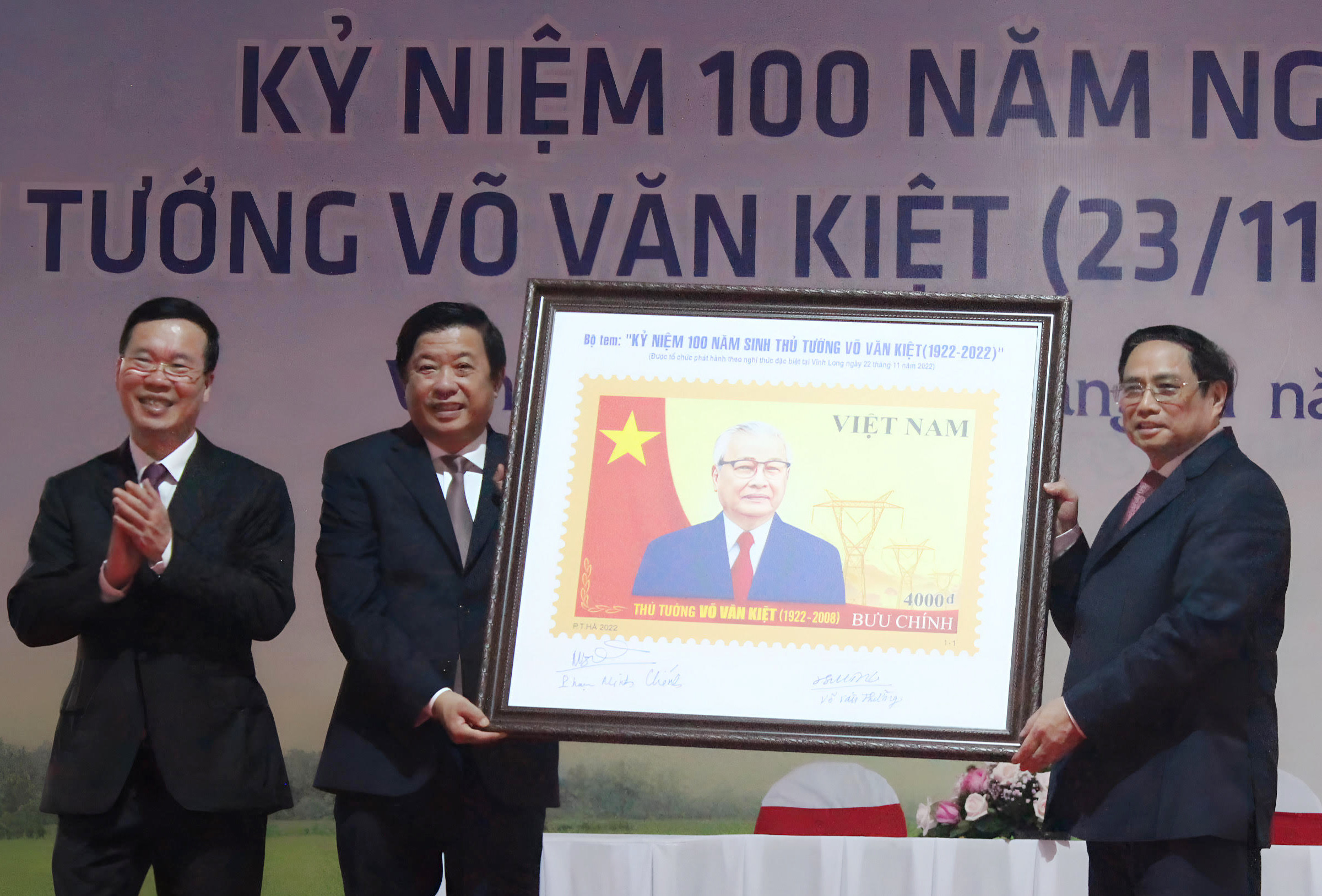 Tại sự kiện, Thủ tướng Chính phủ Phạm Minh Chính và Thường trực Ban bí thư Võ Văn Thưởng đã ký phát hành bộ tem đặc biệt. Đồng thời, Thủ tướng và Thường trực Ban Bí thư ký tên lưu niệm lên bức tranh tem in hình ảnh cố Thủ tướng Võ Văn Kiệt.
