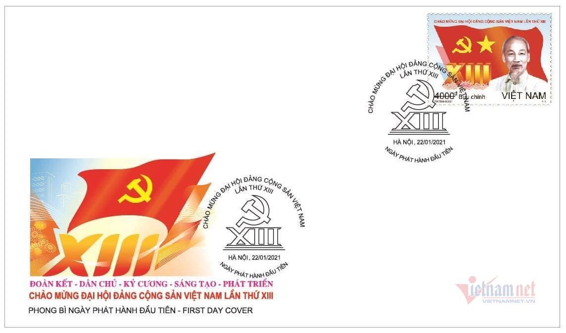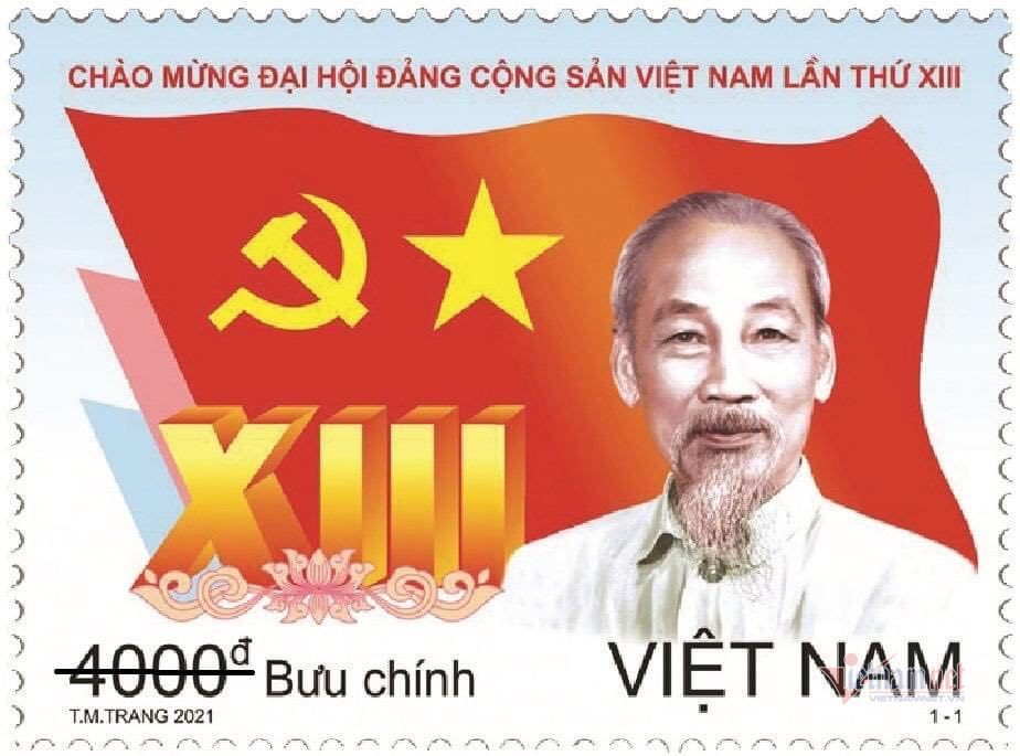 | Mẫu tem “Chào mừng Đại hội Đảng Cộng sản Việt Nam lần thứ XIII”. |